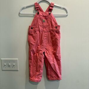 Carhartt Toddlers Pink Overalls 2T Canvas Bib Snap Buttons Straight Leg Pull On