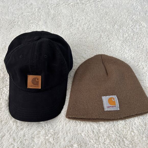 Carhartt Unisex Taupe Beanie & Black Hat Bundle Edgy Work Wear