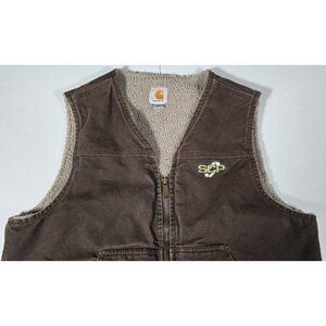 Carhartt V26 DKB Brown Canvas Sherpa Lined Full Zip Outdoor Work Vest Men's L