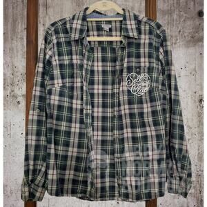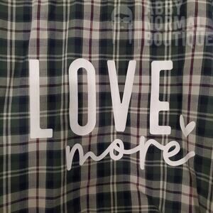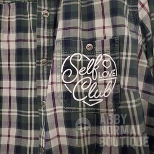 "Love More" "Self Love Club" Custom Upcycled Carhartt Women's Button-Up Valentine Dress Shirt . This green plaid cotton shirt, gives it that vintage western cottagecore appeal!