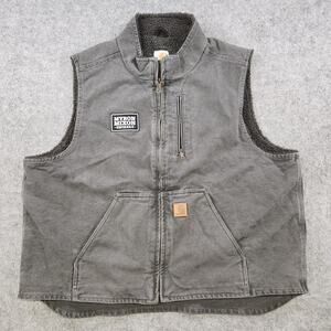 Carhartt Vest Mens 2XL Gray Sherpa Lined Full Zip Canvas Duck Myron Mixon Jacket
