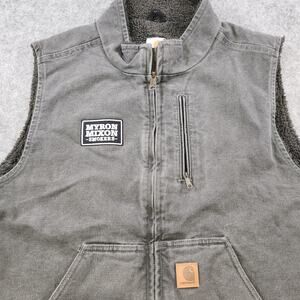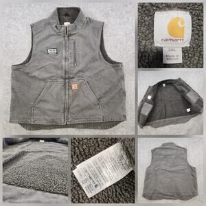 Carhartt Vest Mens 2XL Gray Sherpa Lined Full Zip Canvas Duck Myron Mixon Jacket. You can see the condition from the photos. You can get further information from looking at what is shown in the photos. Pricing low to sell fast. I offer combined shipping on multiple purchases. All purchases should arrive within 2 to 9 days. International buyers should expect longer shipping time. If there are any issues please do the right thing and message me before leaving feedback.