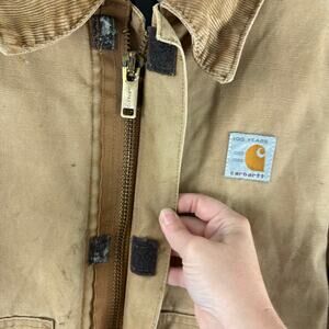 Tag size is faded, but estimating to be a size Large. Don't miss out on this iconic vintage Carhartt jacket!