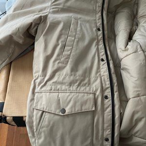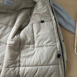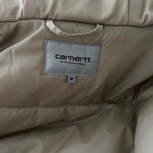 Barely worn beige Carhartt Works in Progress parka. Good as new, replacement snap components included. Sandy-beige colorway.