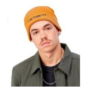 The Carhartt Wheat Beanie is a stylish men's accessory in a one-size-fits-all design. This brown beanie features the iconic Carhartt brand logo and is perfect for keeping warm in cold weather. Made by Carhartt, known for their durable and high-quality clothing and accessories.