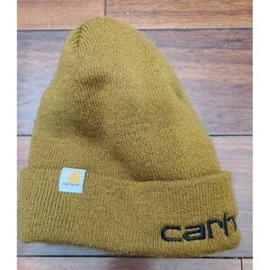 The Carhartt Wheat Beanie is a stylish men's accessory in a one-size-fits-all design. This brown beanie features the iconic Carhartt brand logo and is perfect for keeping warm in cold weather. Made by Carhartt, known for their durable and high-quality clothing and accessories.