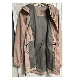 Carhartt Windbreaker Rain Jacket Women’s Sz M Pink Peach Zip Hooded Mesh Lined