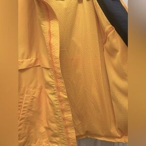 Carhartt J104-YLW Workshield,windbreaker,workwear,jacket with hoodie, regular fit, mesh lined, pocket at the front,one zipper pocket inside,adjustable snap closure at the cuffs, brand printed on cuff buttons details, adjustable drawstring on the hood and hem,lightweight, vented front and back. Great preowned condition,gently used,some color transfer on the left under arm,some signs of wear, clean ( showed in photos )