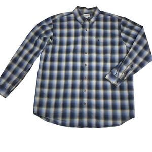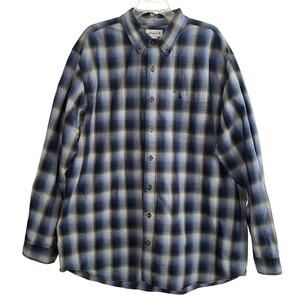Carhartt Windowpane Plaid 100% Cotton Button Up Work Shirt Blue White Size 2XL