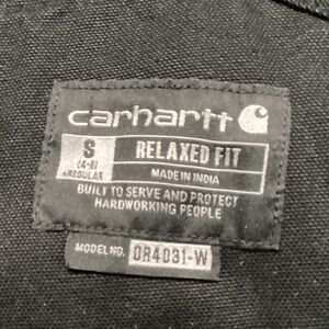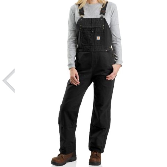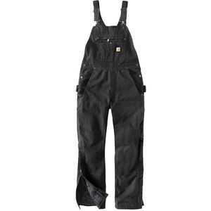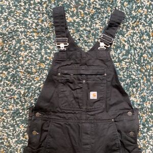 Durable black bib overalls with quilted lining. Insulated. Ideal for outdoor work. Gently used with a lot of life left!