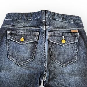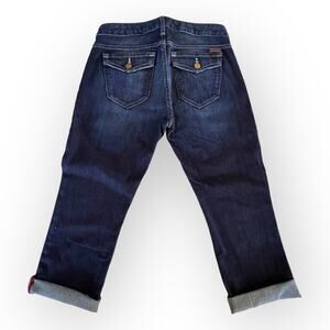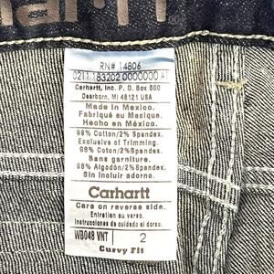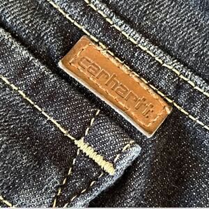 Carhartt Womens Capri Jeans Curvy Fit Dark Stonewashed Blue Leather Patch Cuffed