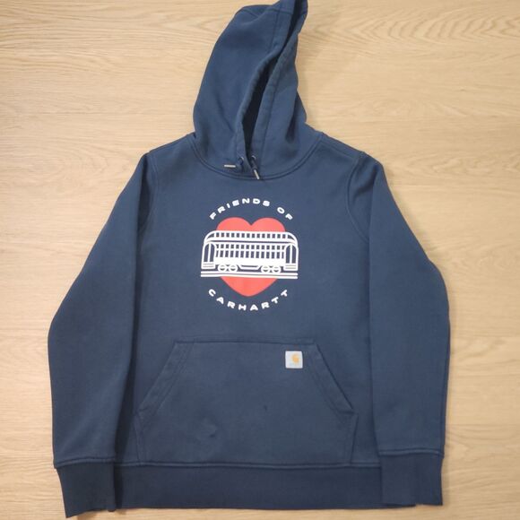 Carhartt Womens Hoodie Sweatshirt Medium Blue Pullover Heavyweight Relaxed