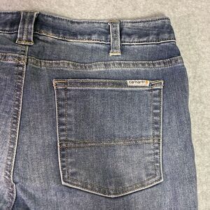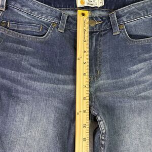 Carhartt womens slim fit skinny leg jeans in size 8 Regular. Classic medium wash denim with a comfortable slim fit through the hips and thighs, tapering down to a skinny leg. Durable and versatileperfect for both workwear and everyday casual style.