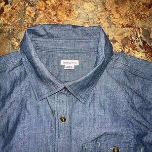 Carhartt Women’s Long Sleeve Collared Half Button Down Shirt Blue Size Small