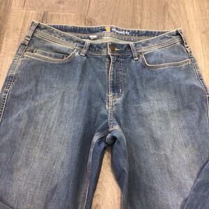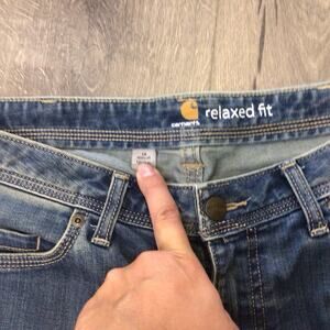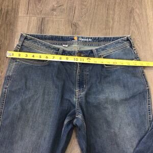 Carhartt Womens Relaxed Fit Medium Wash Mid Rise Jeans Work Pants Size 14W