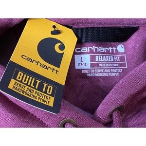 FEATURES Description This women's hoodie has the soft feel of a favorite sweatshirt with warmth and durability that can keep you warm throughout your busy day. It's made of heavyweight fleece, with a relaxed fit that allows for easy layering. A kangaroo pocket in the front gives you a place to warm your hands. Features 10.5-ounce, 55% cotton/45% polyester Pullover with attached three-piece hood Carhartt block logo across chest� Front pouch pocket with hidden media pocket Ribbed cuffs and waistband Country of Origin: Imported Size Chart Note: If your measurement falls between sizes, buy the larger size. Units are expressed in inches and reflect general body dimensions. Measurements are approximate. BUST WAIST HIP (SEAT) X-SMALL 0 - 2 33 27 36 SMALL 4 - 6 34 - 35 28 - 29 37 - 38 MEDIUM 8 - 10 36 - 37 30 - 31 39 - 40 LARGE 12 - 14 38½ - 40 32½ - 34 41½ - 43 XL 16 - 18 41½ - 43½ 35¾ - 38 44½ - 46½
