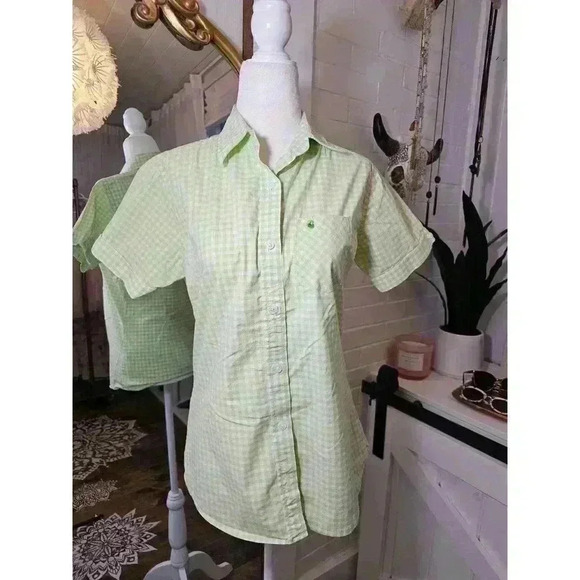 Carhartt Women's Size M Green and White Plaid Button-up Short Sleeve Shirt