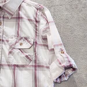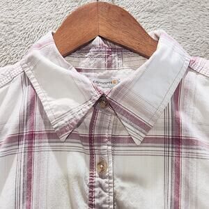 Carhartt Womens White Purple Plaid 3/4 Sleeve Button Up Size Medium Western Work