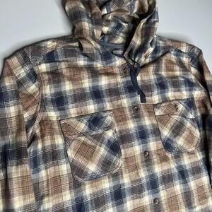 Authentic Carhartt women’s flannel shirt jacket with hood. Size XXL (tagged 2X/20). Made of soft and durable 100% cotton. Features: