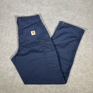 Carhartt 383-20 Carpenter Work Pants Dungaree Fit Straight Leg Blue Canvas Men's Size 32x32. Preowned in great condition. Light wear, no flaws besides a faint stain on the bottom hem which can be seen in the photos. Thanks!