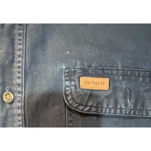Carhartt Workwear Essential Streetwear Two Pocket Stitched Logo Navy Long Sleeve Button Up Collar Shirt Mens Large Excellent Condition Heavy Denim Fabric.