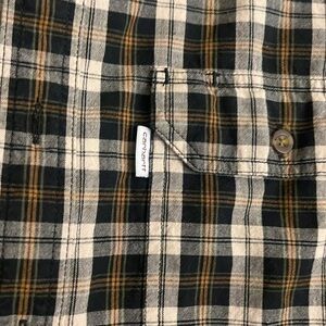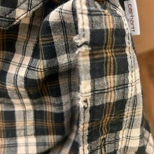 Carhartt Workwear Rugged Relaxed Fit Flannel Plaid Button Down Shirt, Sz. XL. A top mens brand, this 100% cotton, loose fit, long-sleeve button-down is perfect for any outdoor activity. Slight flaw pictured; the button area has some wear. Other than that, good pre-owned condition and definitely ready for more use for work and play. An excellent addition to any closet!
