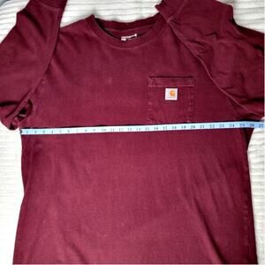Carhartt XL shirt, maroon pocket tee, long sleeve workwear shirt, loose fit Carhartt top, rugged work shirt, outdoor wear, chore shirt, heavy-duty cotton shirt, workwear, rugged outdoors, casual basics, skater style, streetwear, utility clothing