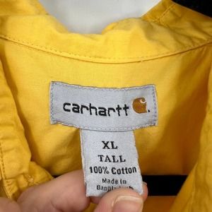 Carhartt yellow casual button down short sleeve vented, front pocket, collared. Men's size XL Tall three small dot stains as pictured.