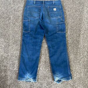Basic Carhartt carpenter jeans- fair condition as shown in pics the back ankle area has damage.. no other stains