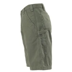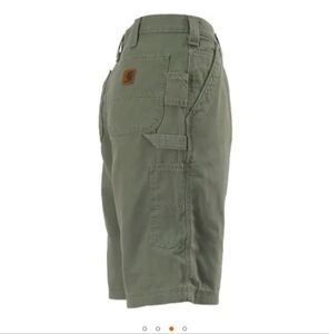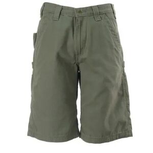 Crafted from 8.5-ounce, 100% ring-spun cotton canvas, these green Work Shorts from Carhartt are a great choice for those hot days on the job. But less fabric doesnt mean less performance. They're well-equipped for work with reinforced back pockets and that outstanding durability and performance Carhartt is known for. Plus, they're exceptionally functional too. On each leg youll find ruler and hammer loops. Add a right seam utility band and that means you have a place for everything.