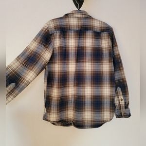 I LOVE this flannel. It's thick and holds its shape so well. The colors are shown best in the photos that are up close, beautiful navy and brown tones.