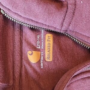 Carhartt kids Large 12/14 zip up light burgandy hoodie with pockets LOT F