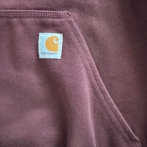 Carhartt loose fit mid weight logo sleeve graphic hoodie in red port color, size small. Drawstring neck. Front pocket. Barely worn.