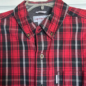 Carhartt men’s red long sleeve button down plaid shirt size medium