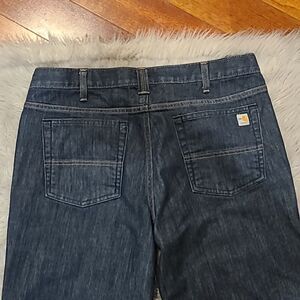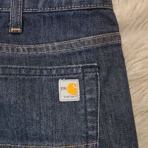 Carhartt womens dark wash original fit fire resistant jeans size 14, small mark on left leg as shown in picture