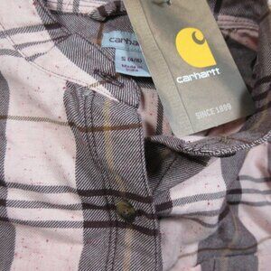 Carhartt womens pink speckled plaid 3/4 sleeve button top S NWT