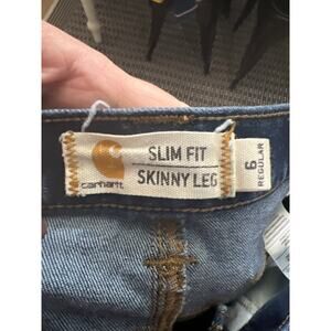 Carhartt womens size 6 slim fit skinny leg jeans in nice condition. Waist is 15” across. Inseam is 29” and rise is 9”.