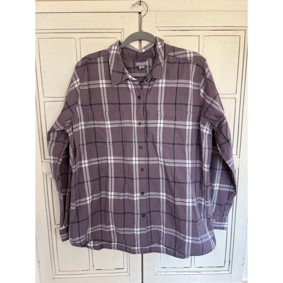 Carhartt womens size XXL 20 purple plaid button down shirt top