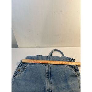 Carhartt 38x28 blue jean denim overalls USA thrashed (missing buckle) rn#14806