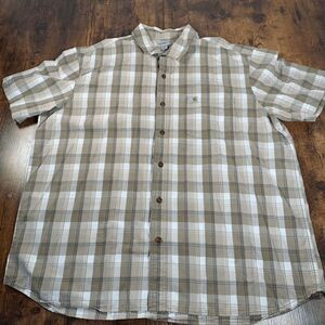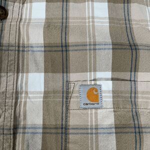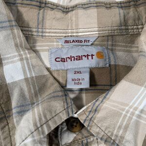 Carhartt Button Down Shirt Mens Tan Multicolor Plaid Short Sleeve Relaxed Fit