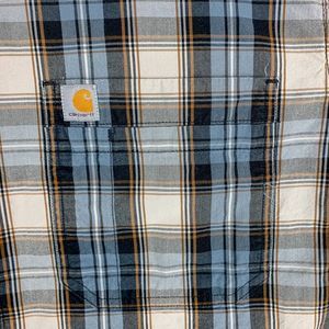 You are purchasing a Carhartt Essential Plaid Shirt Mens Extra Large Blue Relaxed Fit Casual 103550. It is gently pre-owned and in great shape with no visible issues observed - check out the pics for details.