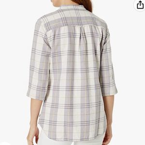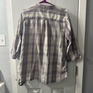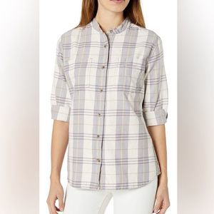 Carhartt Women's Relaxed Fit 3/4 Sleeve Plaid Shirt Gule Gray purple tan Large