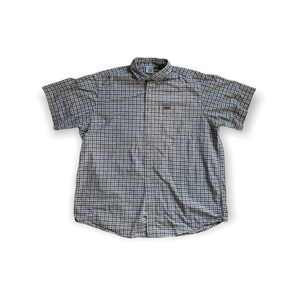 Carhartt short sleeve button down shirt. Non size tag, please review photos for measurements.