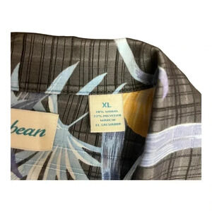 Caribbean Blue Floral Linen Causal Button Front Short Sleeve Shirt Men’s XL