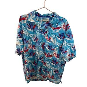 Caribbean Blue Hawaiian Aloha Bird Of Paradise Floral Leaves Shirt Size XL