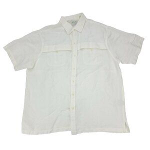 Caribbean Button Shirt Mens XL White Pockets Vented Outdoor Fishing Linen Blend