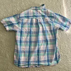 Stay stylish with this casual plaid shirt featuring a blend of blue and green hues. Perfect for any occasion.
