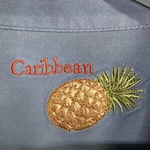 Caribbean Clothing Silk Short Sleeve Hawaiian Tiki Shirt Gray Blue M-073 Sz XL