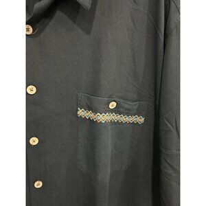 Caribbean Embroidered Cocktail Button Front Shirt Black Sz 3X Pineapple Tropical