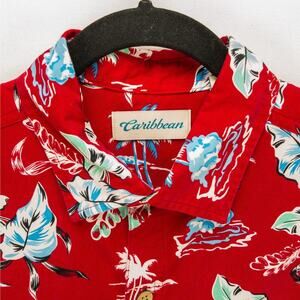 Caribbean Hawaiian Print Shirt Men's Medium Hidden Travel Pockets Red Floral